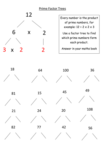 Use this worksheet to consolidate your students' understanding of factor trees. But i'm stuck with questions based on free factor tree worksheets. Introduce your child to factor trees with this simple algebra worksheet.