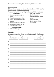 After completing this unit students will be able to Learn about adverbial phrases and adverbs with free interactive flashcards. Your student will underline the phrase in each sentence and tell the way it modifies: