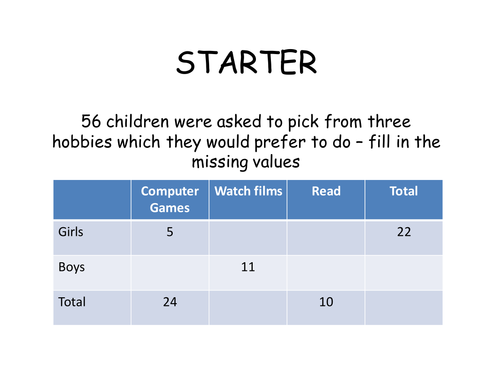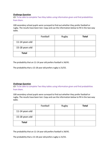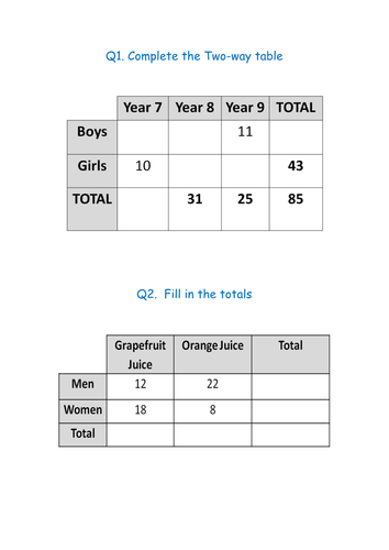 Tools for working with tables. Athey are a way to display frequencies or relative frequencies for two categorical variables. Where is a good resource on two way tables? Rather than just getting the students to do more of the same i have produced the attached activity that initially involves them completing a worksheet with five partially completed tables, but they then have.