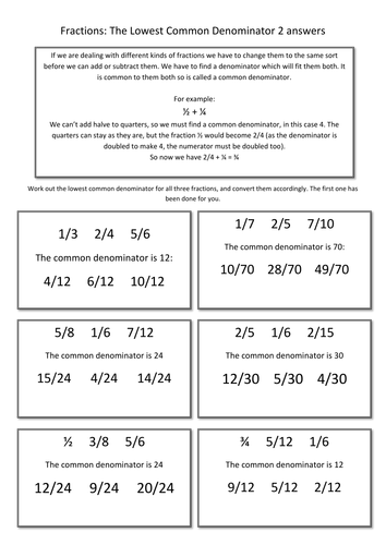 Below are six versions of our grade 6 math worksheet on adding unlike fractions; Found worksheet you are looking for? Least common denominator worksheets + answers can be easily understood and you can solve almost every problem with the help of algebrator. In this worksheet, we will practice finding a common denominator of two proper fractions using models or listing multiples and using this to write both fractions over the same denominator.