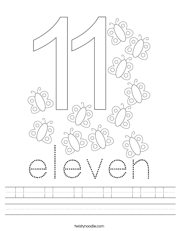Number 11 color trace worksheet. View and print this free printable eleven worksheet and many more number 11 pages at. This is a low resolution image of our printable worksheet for the number eleven.