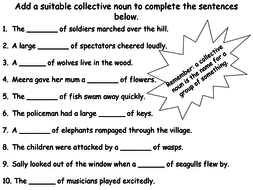 View Collective Nouns Worksheet Background. A collection of downloadable worksheets, exercises and activities to teach collective nouns, shared by english language teachers. A collective noun worksheet can significantly aid in the process of learning about collective nouns, because it provides activities in which the learner can participate.