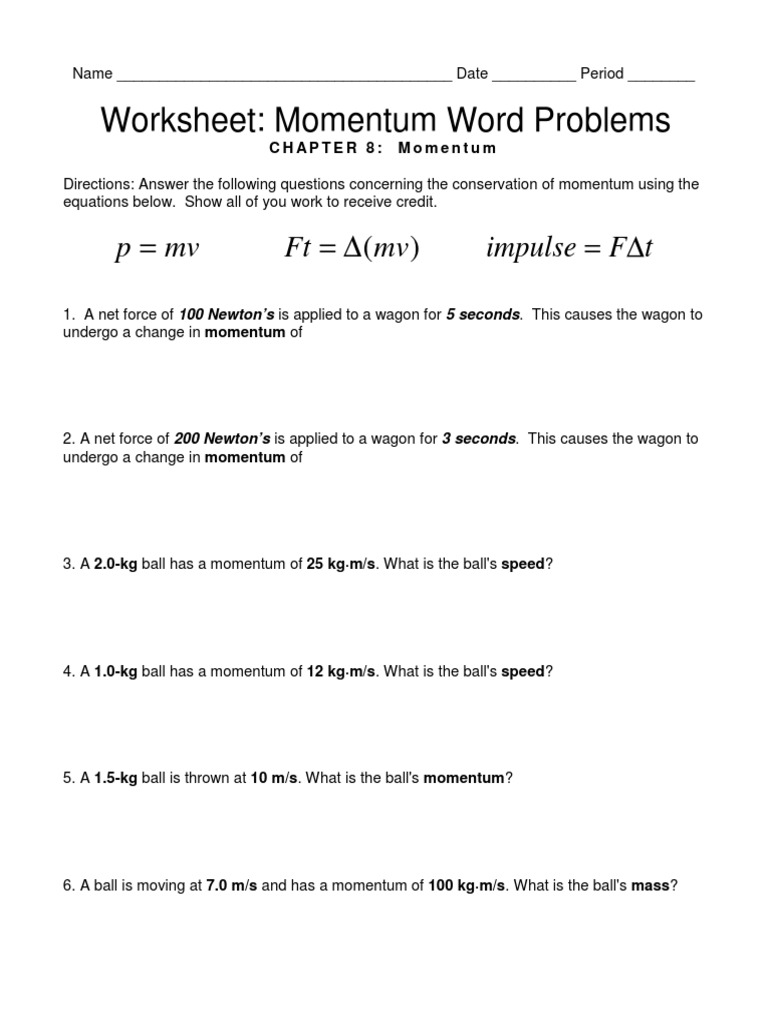 50+ Momentum Worksheet Pics. 12.) two cars, one twice as heavy as the other, move down a hill at the same speed. Physics 30 worksheet # 1: